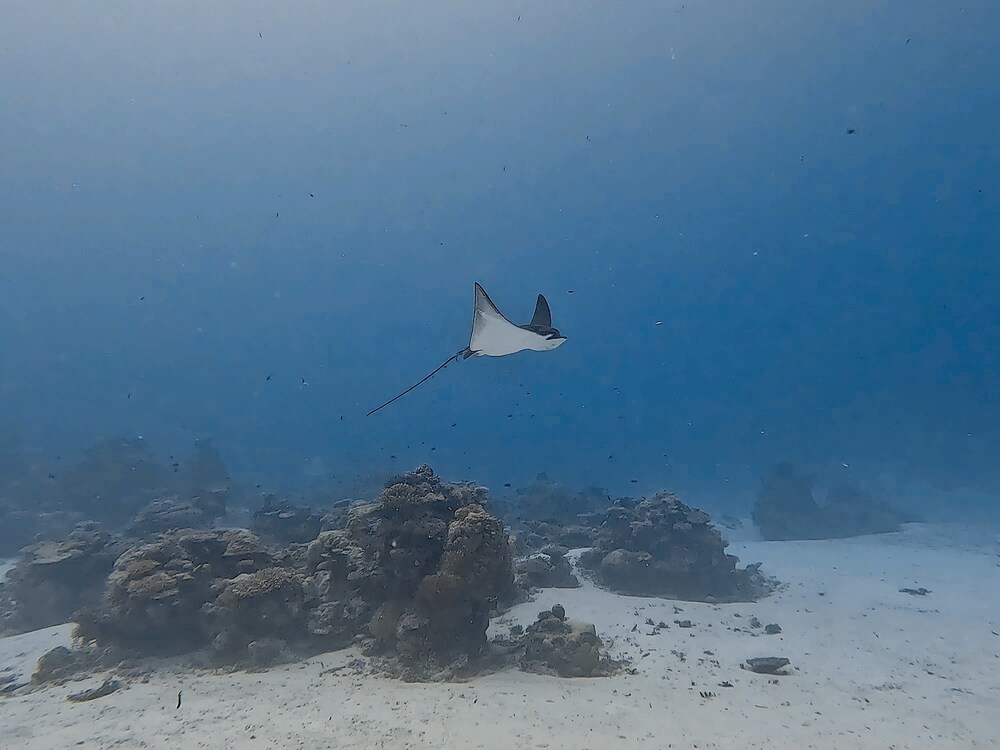 Iedereen die al op de Malediven heeft gedoken, weet wat hij kan verwachten. Alle anderen hebben waarschijnlijk al talloze documentaires of YouTube-video's gezien. Dus in het kort: het is briljant! Het zicht was beperkt in deze tijd van het jaar (soms 10-25 meter), maar dankzij het uitstekende werk van Saaz, Wathey en Munkko konden we veel prachtige duiken maken - zelfs onder moeilijke omstandigheden. De dhoni is iets kleiner dan andere boten, maar biedt alle comfort. De duikbriefings waren altijd informatief, zeer gedetailleerd, met handgetekende kaarten - en een vleugje humor. Een bijzonder groot compliment voor Munkko, die onze contactpersoon aan boord was tijdens de reis. Met je opgewekte, humoristische en competente manier heb je een belangrijke bijdrage geleverd aan het succes van deze reis en aan de groepsdynamiek - hartelijk dank!