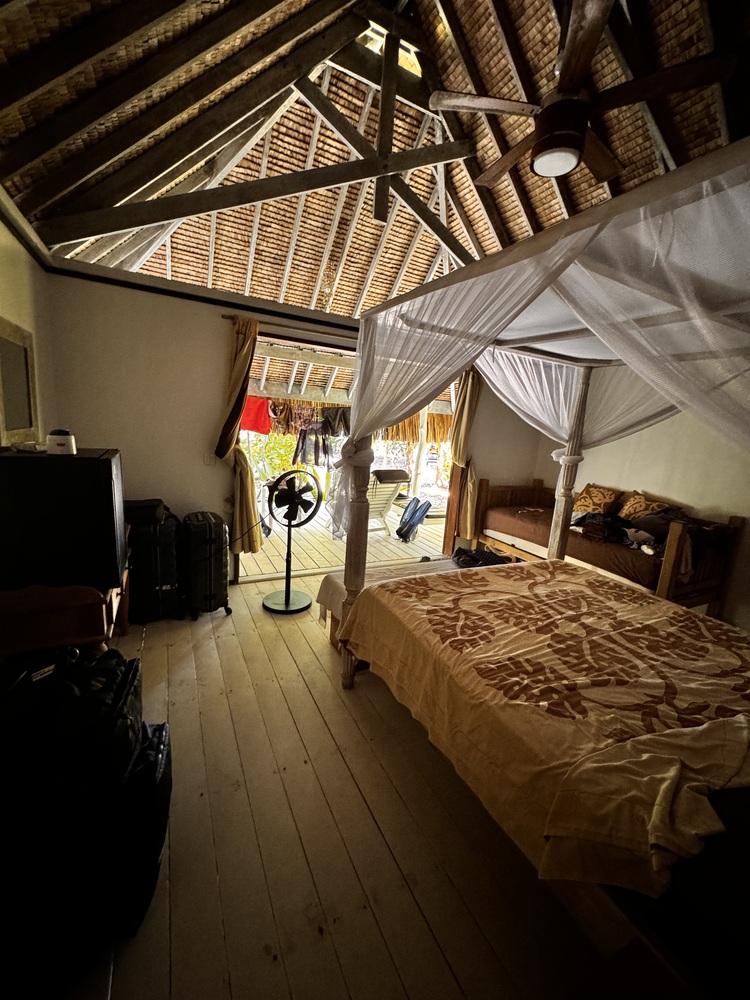 Sehr schöner, freistehender Bungalow. Der Bungalow ist geräumig, hat ein großes Bad mit separaten WC. Bett mit Moskitonetz. Durch offen Bauweise sehr luftig, eine Klimaanlage ist nicht notwendig, selbst den Ventilator haben wir nie genutzt.