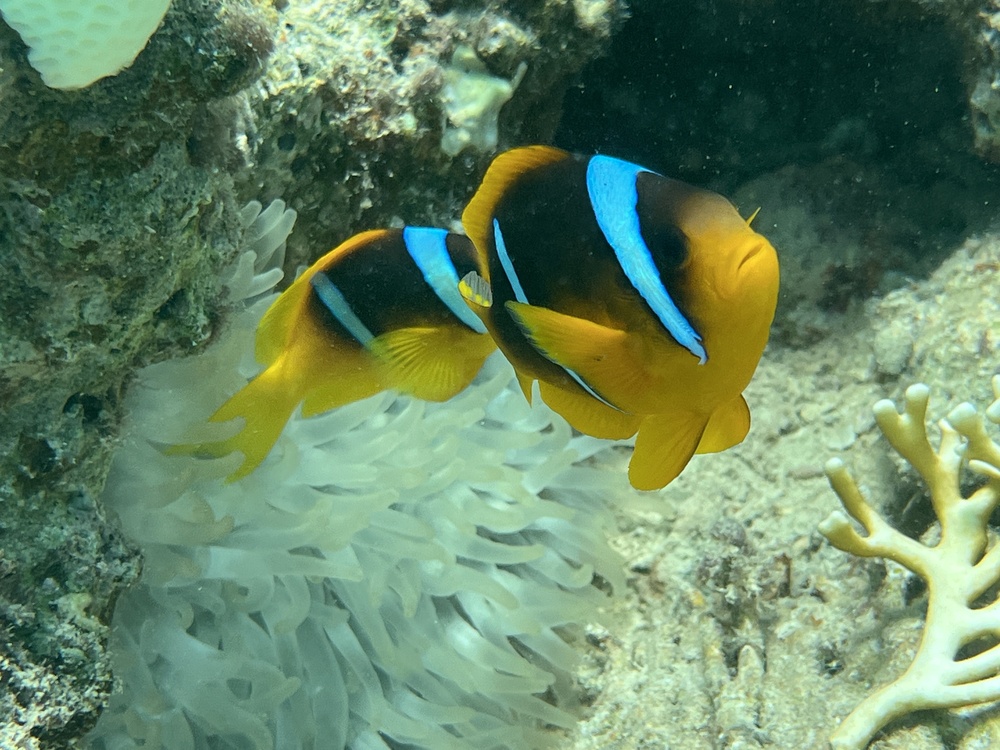 Schade, dass das Riff/ die KOrallen so mitgenommen sind … das Meer ist zu warm, 30 Grad und im Seichten noch darüber. Die Seegraswiese ist leider auch Vergangenheit.