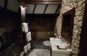 Badezimmer ist halb offen sodass man unter klarem Himmel duschen kann