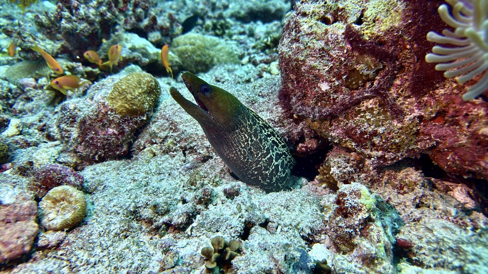 Wir waren täglich 2x am Hausriff unterwegs, das größtenteils in gutem Zustand ist und in jedem Abschnitt sehr schöne Bereiche hat (manchmal muss man die Tiefe variieren). Wo man taucht checkt man am besten schnell mit der Divecenter crew, die einem dann je nach Strömung was passendes vorschlägt und den idealen einstieg zeigt. Wir hatten durchweg entspannte (aber auch spannende) Tauchgänge. Am Hausriff gibt es alles vom Steinfisch und Seenadeln bis zu Adlerrochen und großen Riffhaien. An der Jetty ist auf 25m eine Putzerstation für Haie. Morgens bei Starker strömung am Seil einhaken und abwarten. HaiLive.
